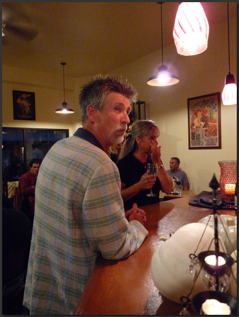 Chuck and Robin ask the barkeep for drinks