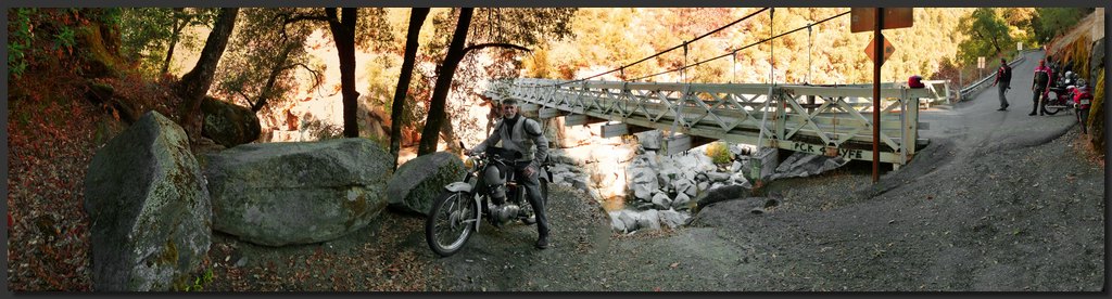 Chuck at the Mosquito Creek suspension bridge