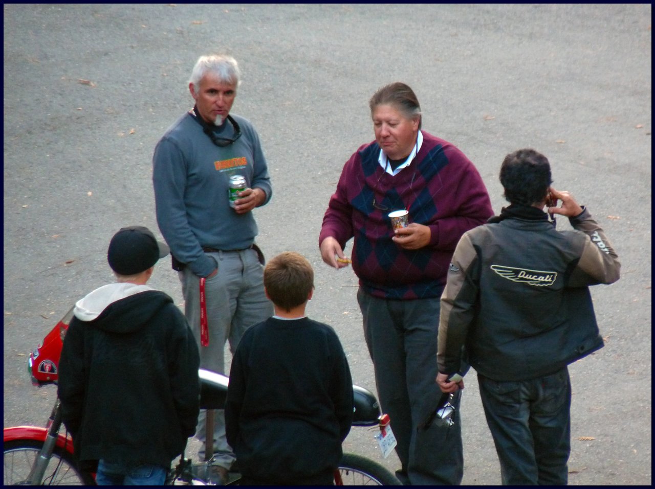 Reviling the locals with tales of moto adventure